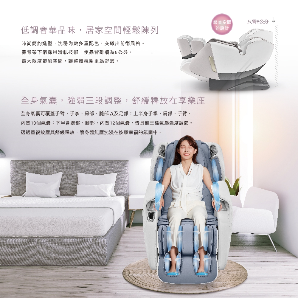 零重力自動躺臥調節角度,按摩過程更為順暢