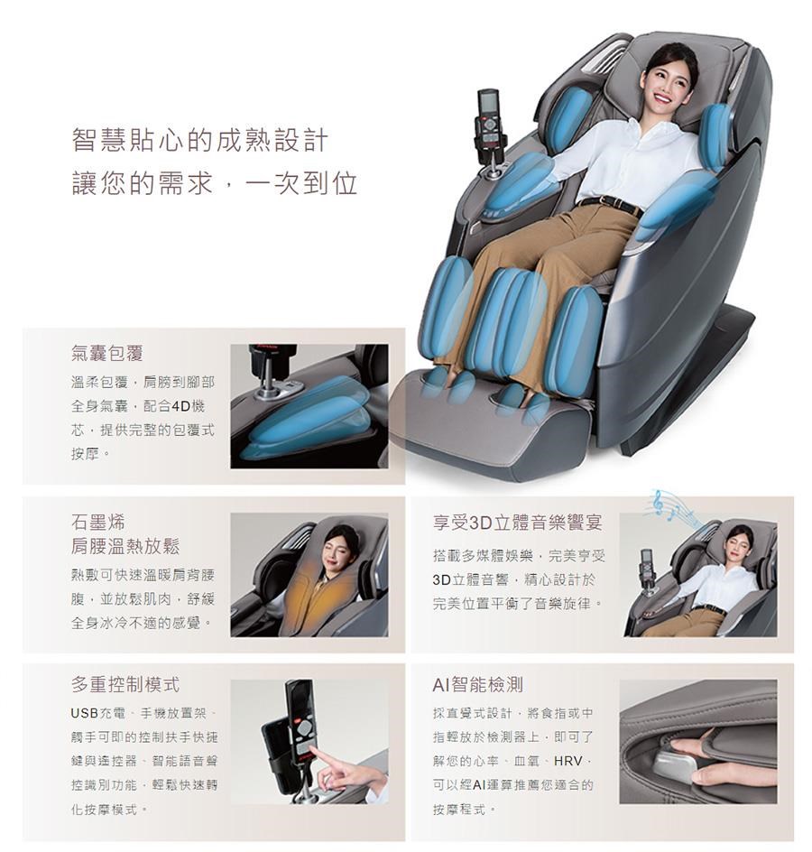 .智能4D體感按摩機芯,深層、大範圍按摩