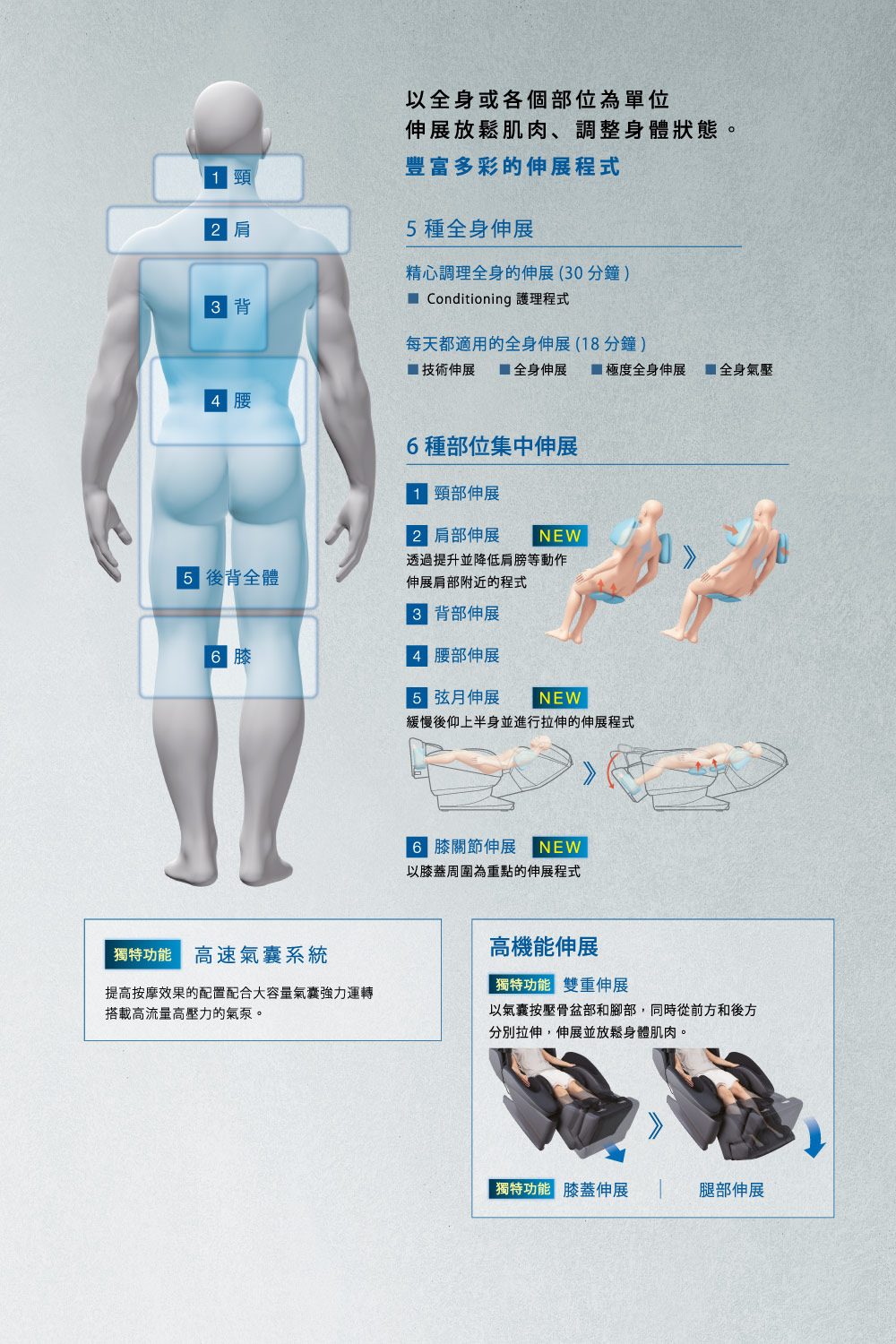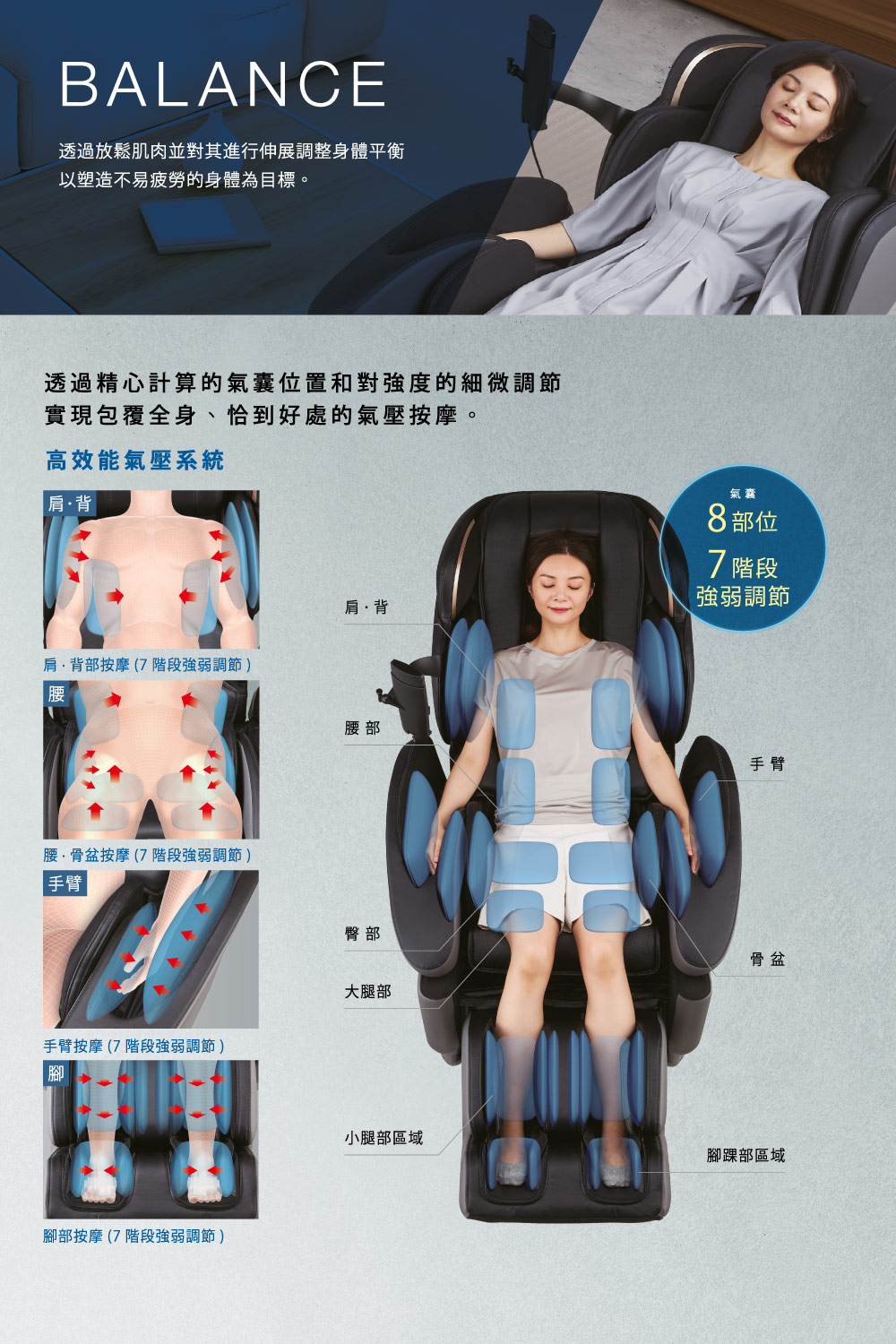 .氣壓按摩,7階段強弱調整全身8個部位